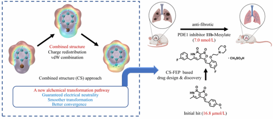 图1. CS-FEP原理示意图及CS-FEP导向的抗肺纤维化PDE1抑制剂结构优化