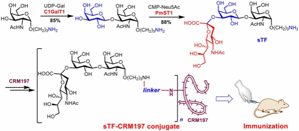 宗成利教授团队在英文期刊Bioorganic & Medicinal Chemistry(JCR二区,影响因子3.5)发表题为“Chemoenzymatic synthesis and immunological evaluation of sialyl-Thomsen-Friedenreich (sTF) antigen conjugate to CRM197”的研究论文,报道了一种基于肿瘤表面sTF抗原亚单位肿瘤疫苗的合成新方法,并研究了其免疫活性。