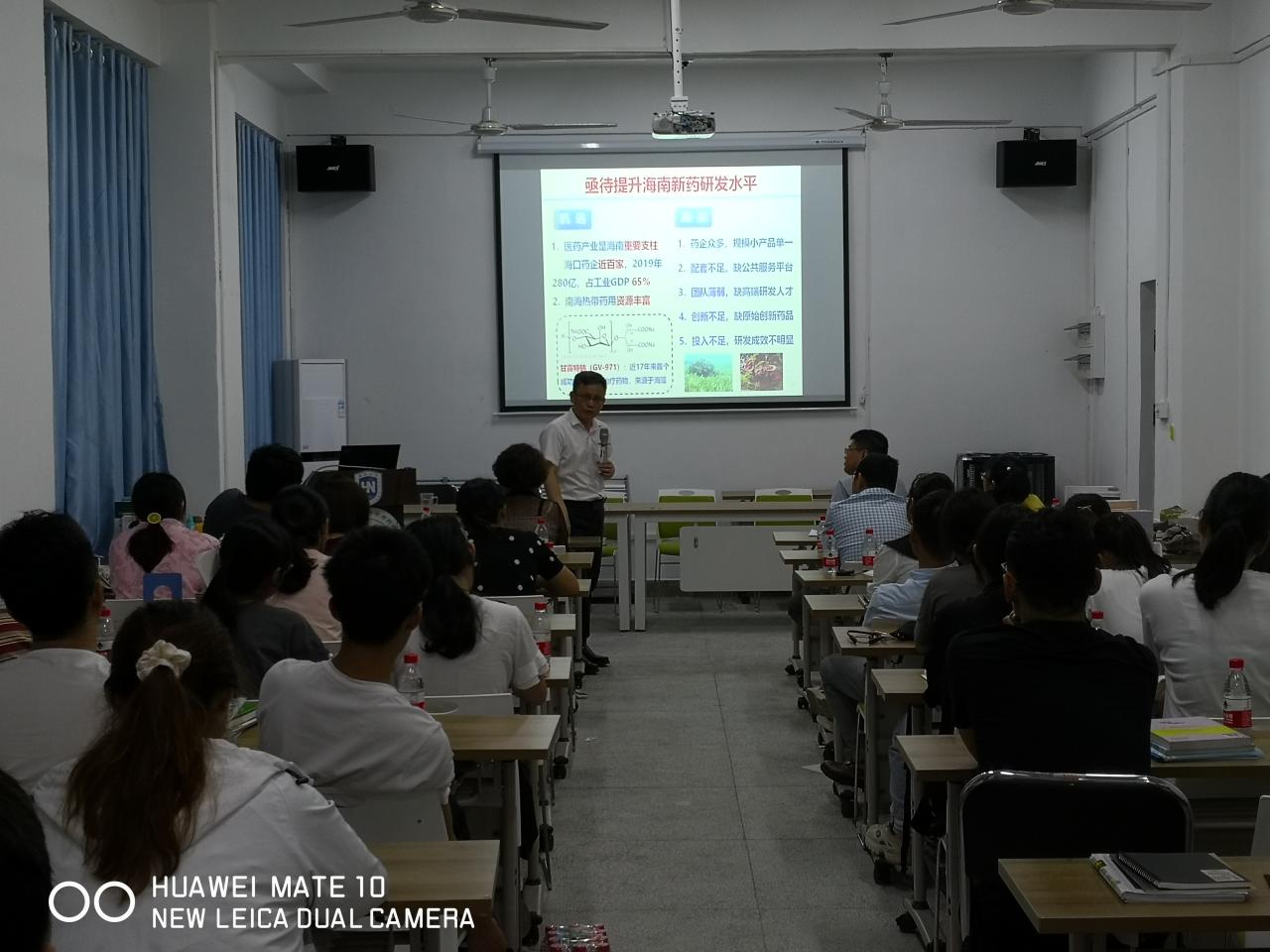 院长罗海彬教授做《中国梦、新药梦》海南自贸港药学论坛主题报告,40余名师生参加。