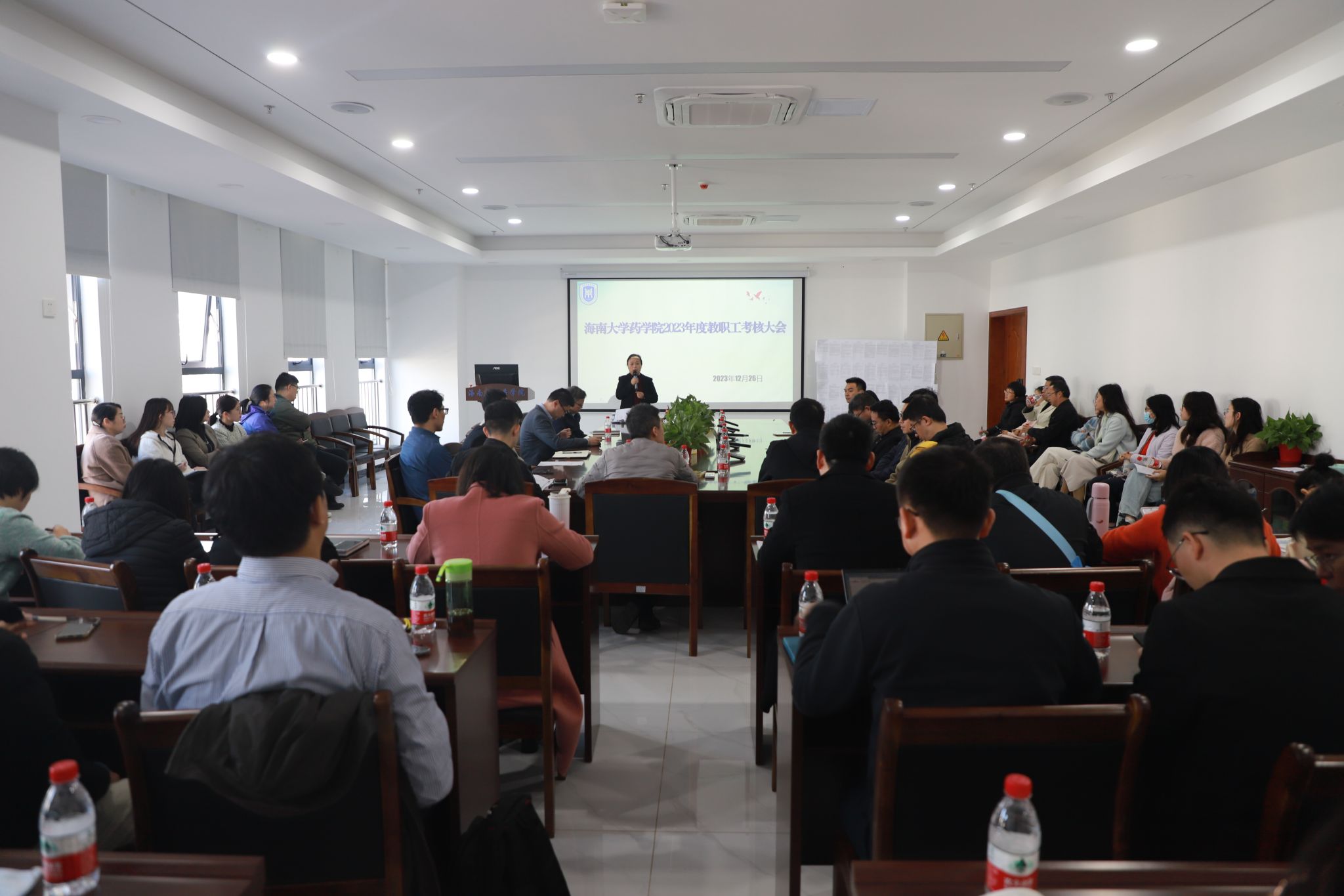 2023年度教职工考核大会在美安药学楼五楼会议室举行