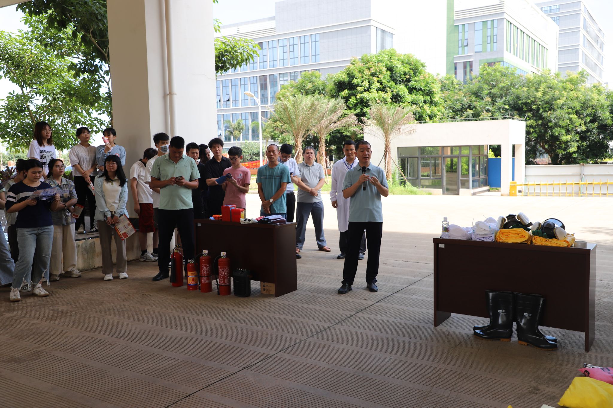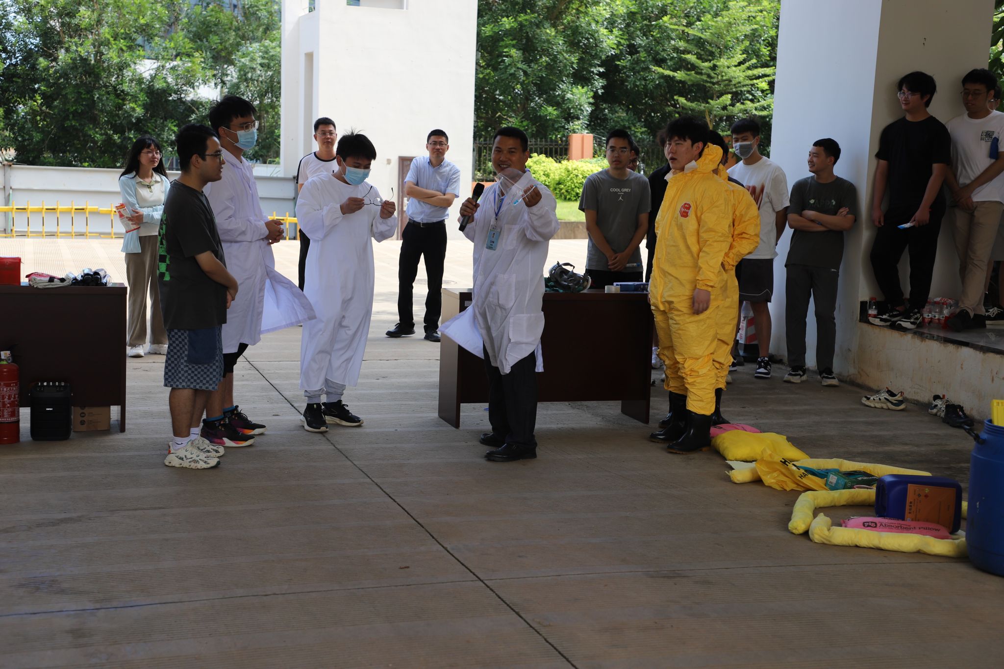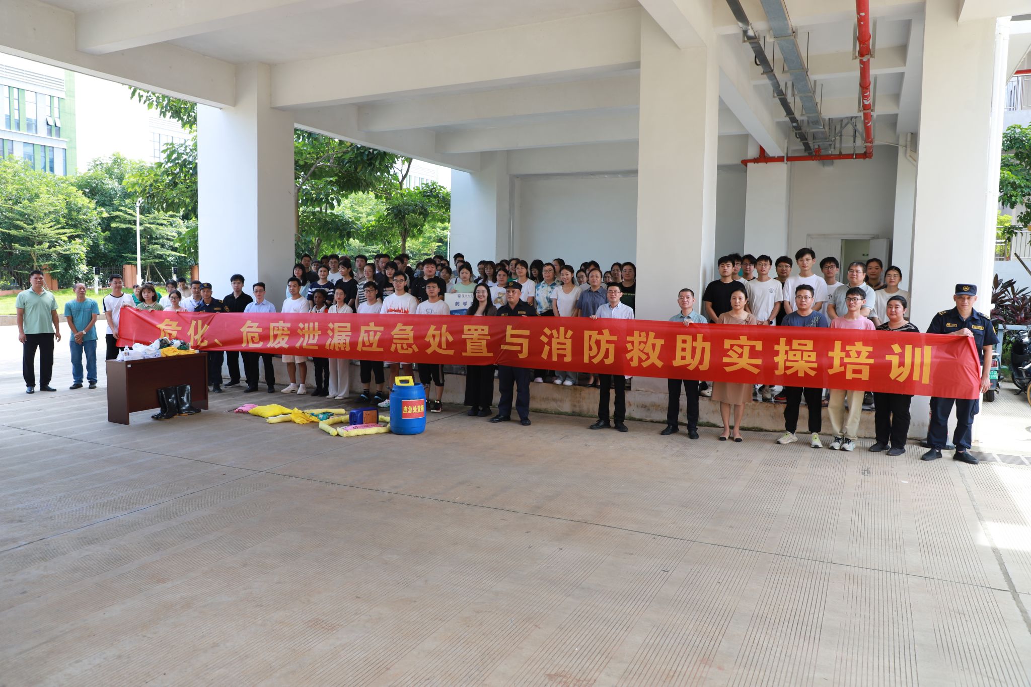 美安大楼下为师生举行了“危化品泄漏应急处置及消防救助实操培训”活动。此次活动旨在进一步强化实验室危化品安全和消防安全管理,有效提升师生应对实验室突发事件的能力,切实保障师生生命安全。
