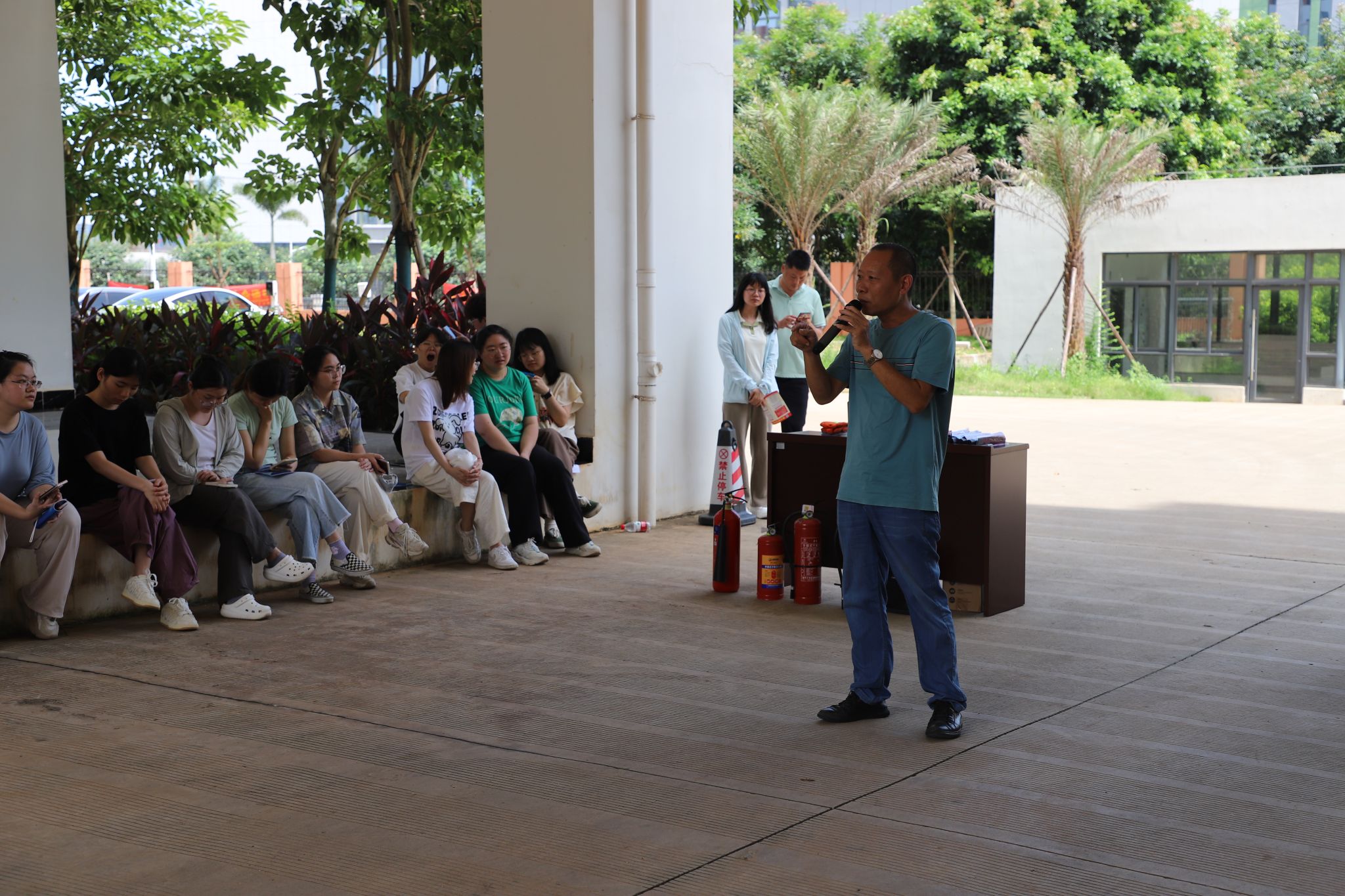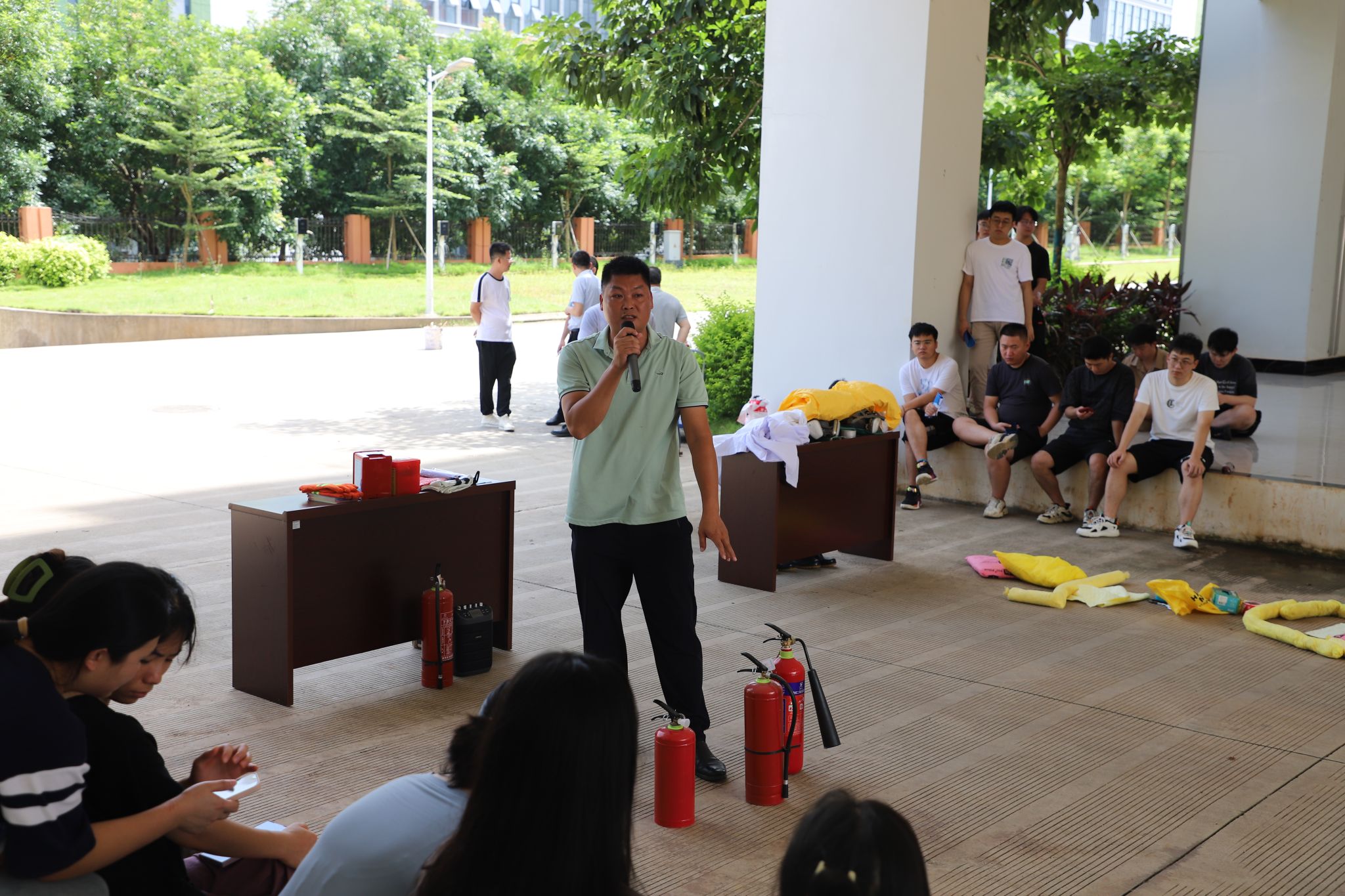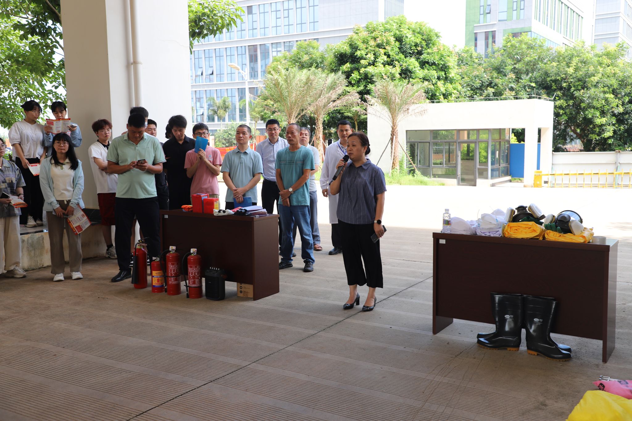 美安大楼下为师生举行了“危化品泄漏应急处置及消防救助实操培训”活动。此次活动旨在进一步强化实验室危化品安全和消防安全管理,有效提升师生应对实验室突发事件的能力,切实保障师生生命安全。
