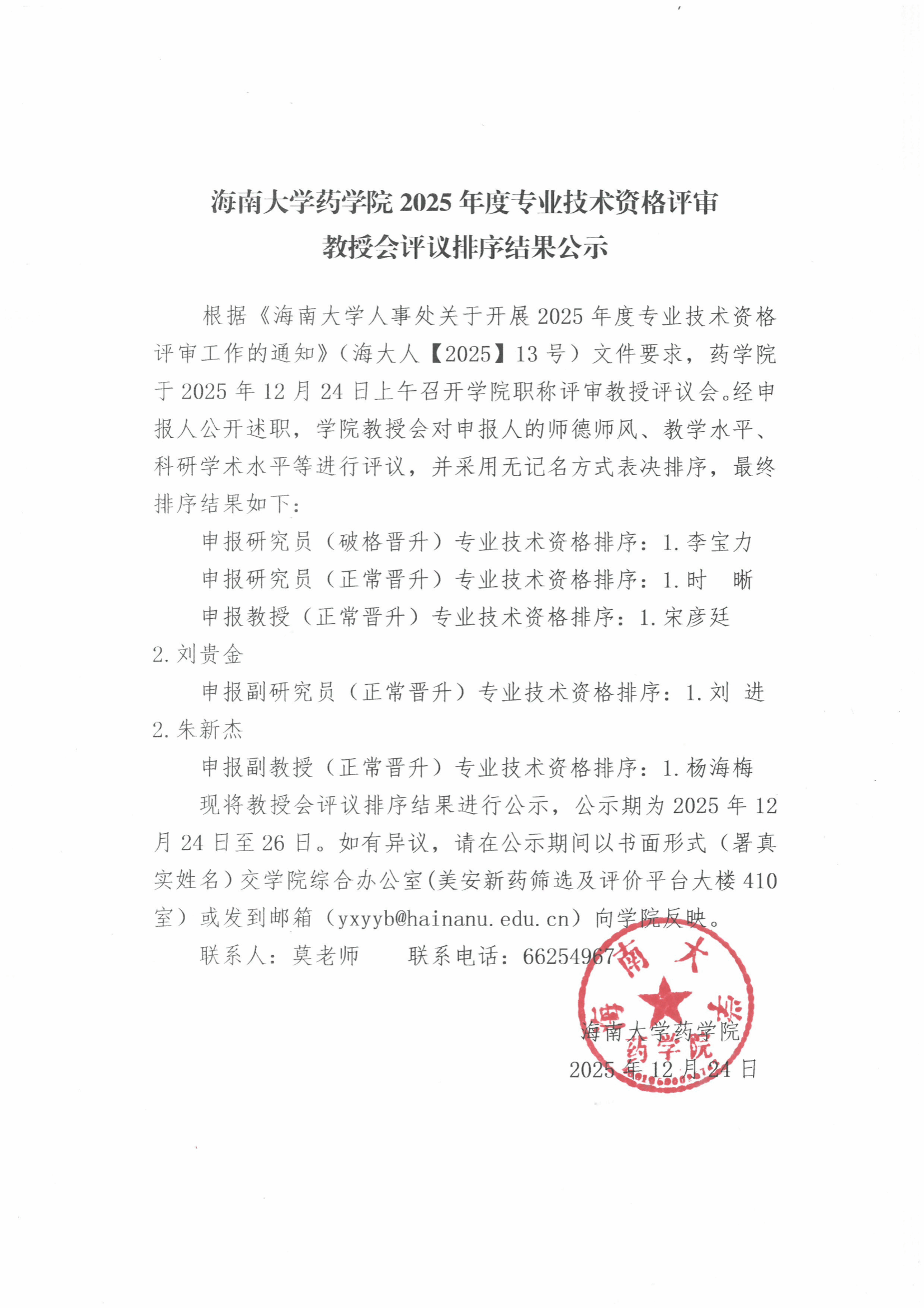 TIBIU 2025年度职称评审教授会评议排序结果公示