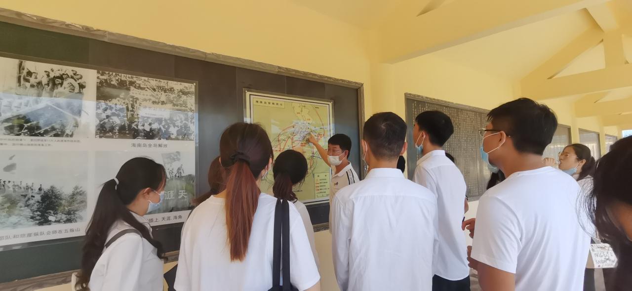 活动中,谢天宇老师结合背景墙上图文资料给大家生动讲述了中国人民解放军渡海部队冒着敌机的狂轰乱炸挺进玉包港强行登陆的作战历史,带领全体党员体会解放海南岛解放战役的英勇壮烈和共产党革命的无畏精神。