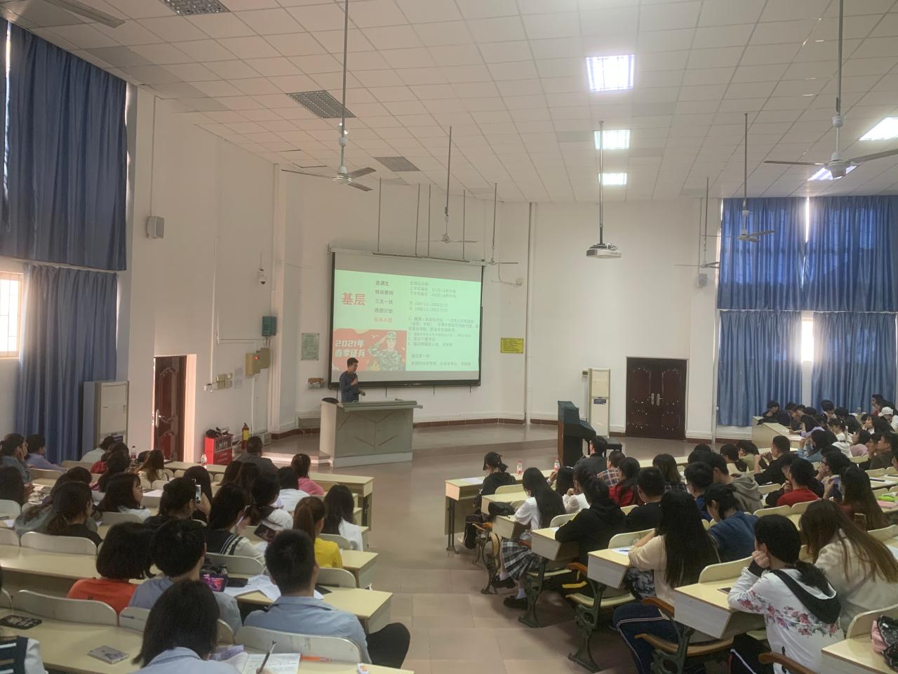随后,辅导员谢天宇针对2021年两批次入伍相关要求和工作安排、征兵入伍成长路径、征兵入伍国家优抚优待政策、以及退役优待政策等内容进行重点宣传和讲解,从细节政策上强调征兵入伍的诸多有利自身成长和发展的空间。